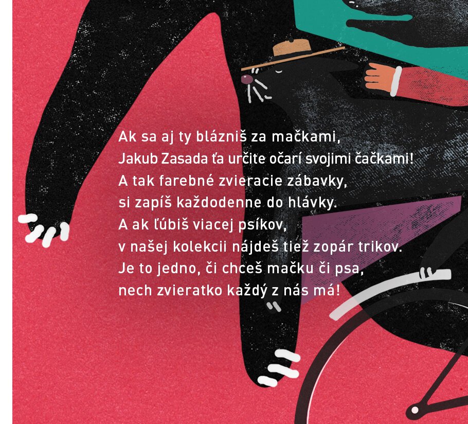 Medzi motívmi, ktoré som navrhol, nájdete všetko, čo sa mi páči, čo ma sprevádza v každodennom živote, a preto bola pre mňa práca na týchto vzoroch potešením. Vo svete týchto jednoduchých ilustrácií sú mačky a psy (Pola a Rudy), vinylové platne, malé výlety a sem tam cigareta. Nad všetkým vládne atmosféra relaxu, štedrosti a priateľskosti, ako keď sa vydá mačka so psom na výlet turistickým autobusom Aloha Tour.