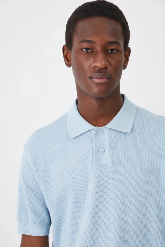 Bavlnené polo tričko pánske s textúrou tyrkysová farba