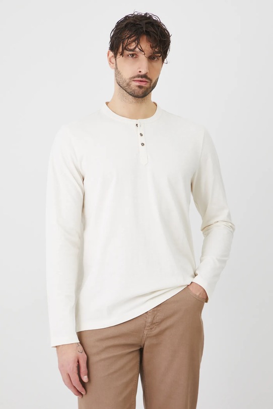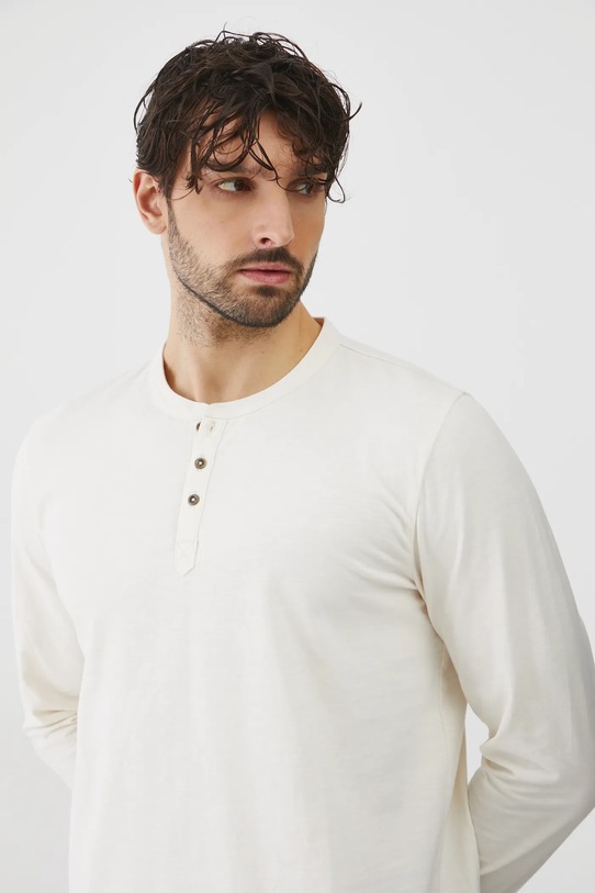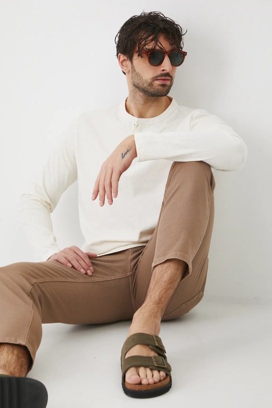Bavlnené tričko s dlhým rukávom hladký béžová farba